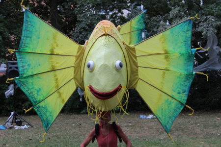 Die überlebensgroße Fischfigur verschluckt jede Menge Plastiktüten an denen er fast erstickt. Der Taucher erkennt dies fast zu spät und kann den Fisch mithilfe der Kinder jedoch retten.