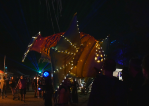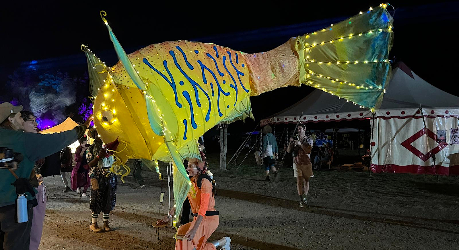 Un pez vuela sobre nuestras cabezas, brillante y juguetón.